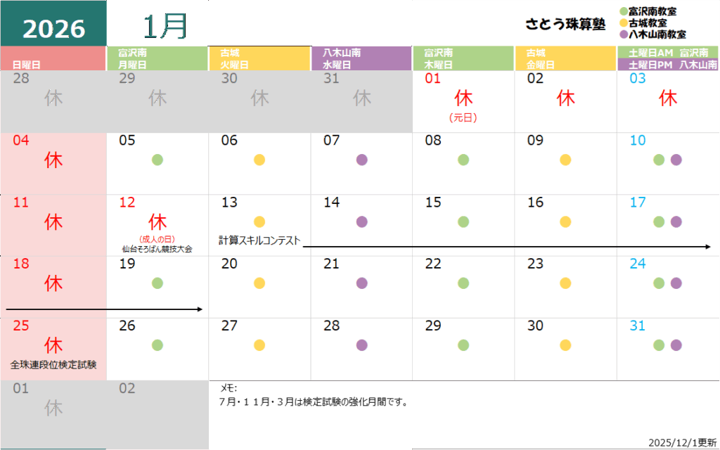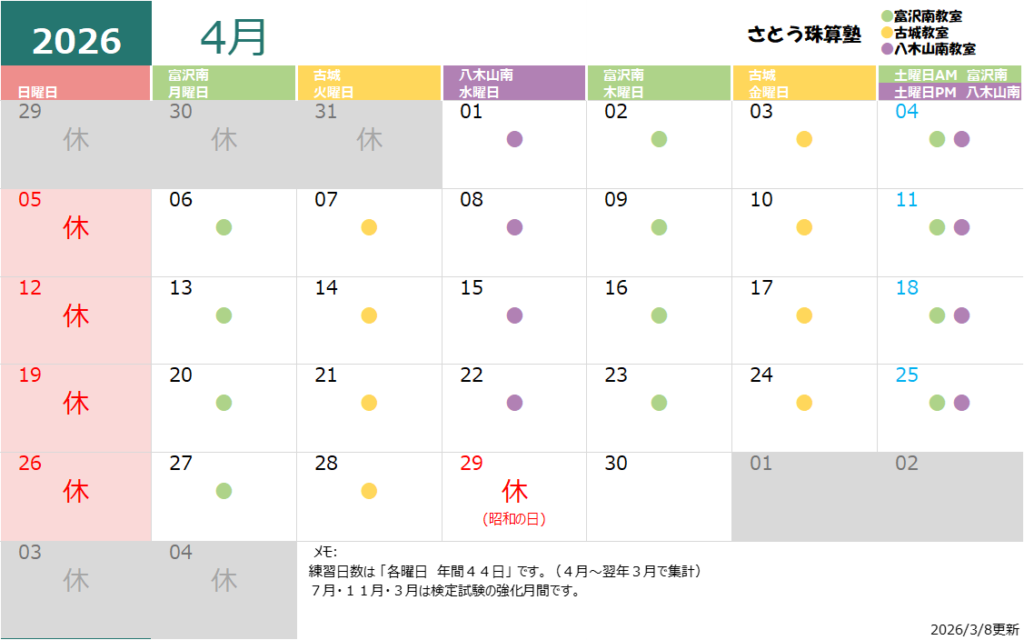 練習日カレンダー